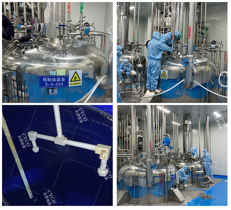 Pharmaceutical Vessel Cleaning System from CYCO is an automated lift cleaning solution designed to thoroughly sanitize pharmaceutical vessels including reactors, preparation tanks, storage tanks, crystallizers, and fermentation vessels. It combines 3D rotary cleaning nozzles, high‑pressure spray heads, PTFE cleaning balls, and versatile lift mechanisms (reel‑type, electric, pneumatic) for deep, targeted cleaning with no blind spots even around agitator blades. Supporting semi‑automatic or PLC‑controlled fully automatic operation, it significantly shortens cleaning times, reduces cleaning fluid usage by up to 30%, and lowers overall operational costs while ensuring hygienic, consistent results for pharmaceutical production environments.